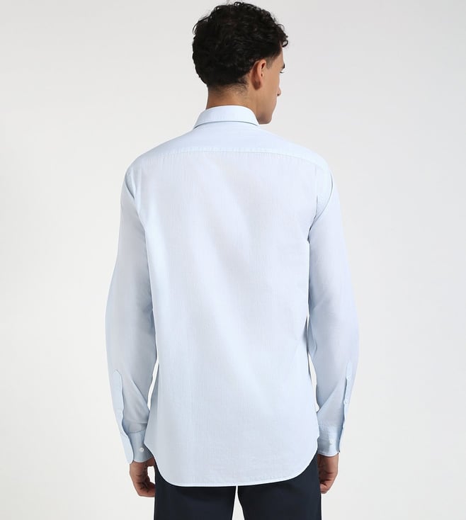 A classic, crisp blue shirt that embodies timeless style. Crafted from soft, breathable cotton, this regular fit shirt offers comfort and durability. The solid full sleeves and classic collar provide a polished look, perfect for both casual and formal occasions. Whether you're dressing up for a night out or keeping it casual for a day at the office, this blue shirt is a versatile wardrobe essential.