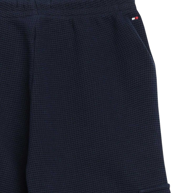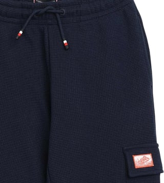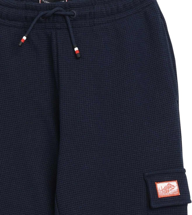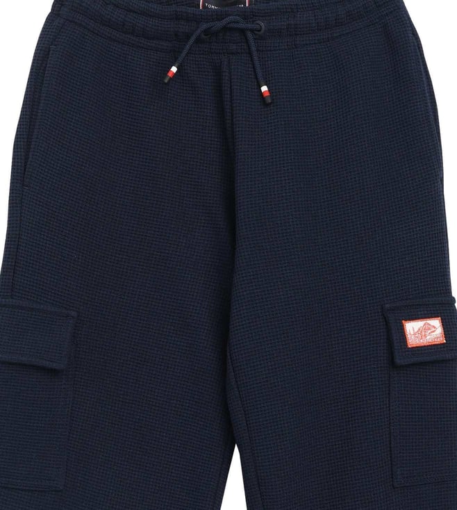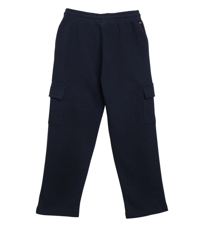 TOMMY HILFIGER Blue Cotton Regular Fit Textured Trackpants