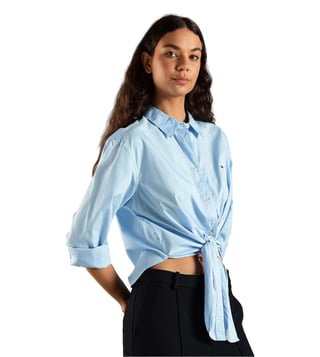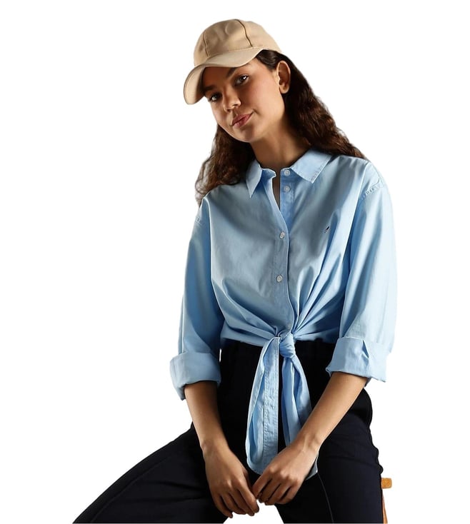 TOMMY HILFIGER Blue Cotton Relaxed Fit Shirt
