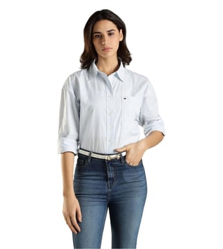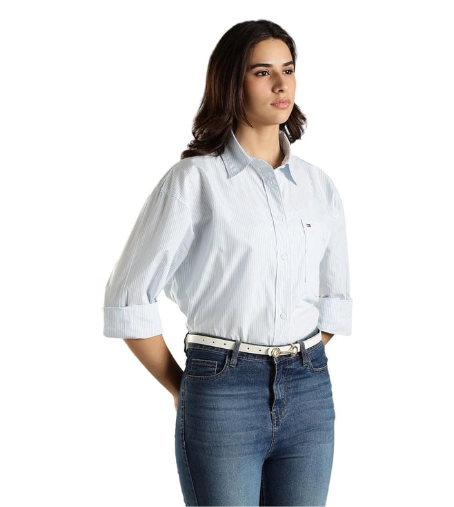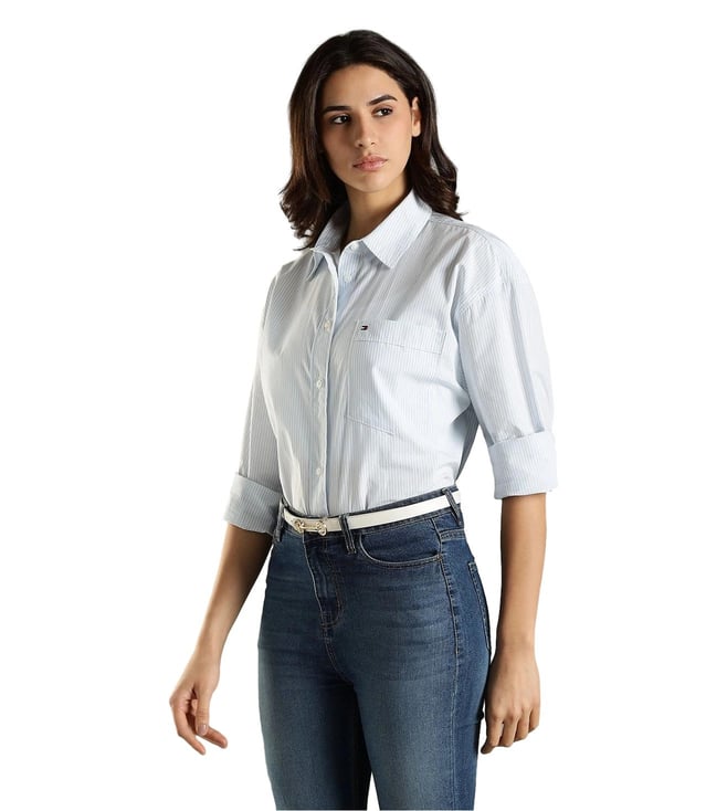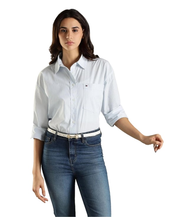 Channel casual chic in shirt from Tommy Hilfiger. Designed for women who appreciate a good bargain without compromising on style the design ensures comfort while stripes add a flattering effect. Perfect for casual outings or relaxed workdays this shirt blends fashion and function. Pair with jeans or a skirt for a versatile look that transitions from day to night.