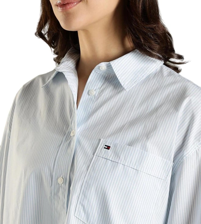 TOMMY HILFIGER Blue Cotton Relaxed Fit Striped Shirt