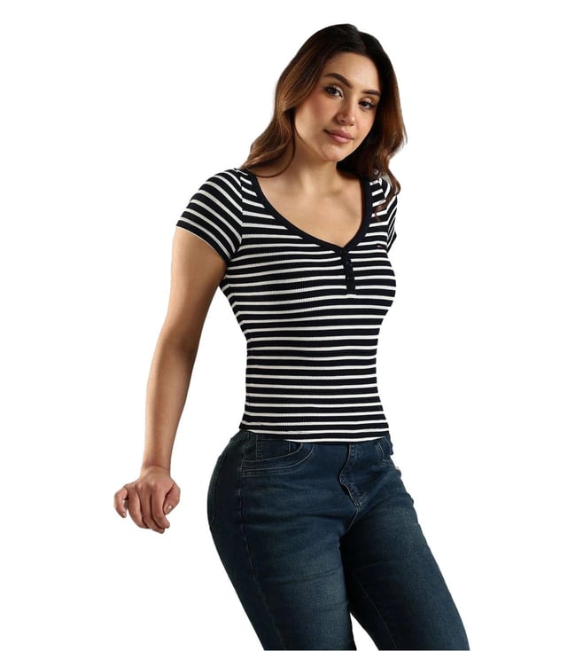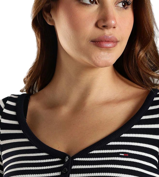 TOMMY HILFIGER Blue Cotton Slim Fit Striped T-Shirt