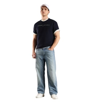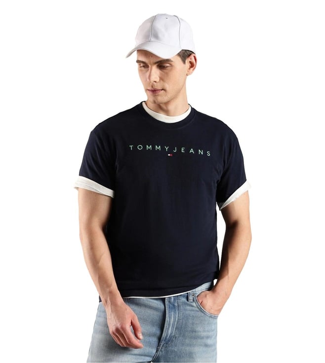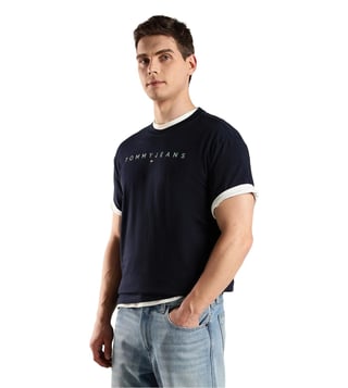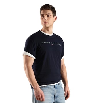 TOMMY HILFIGER Blue Embroidered Logo Regular Fit Cotton T-Shirt