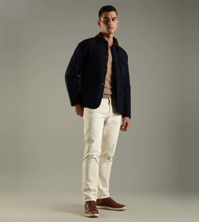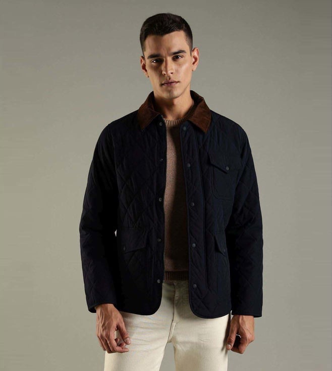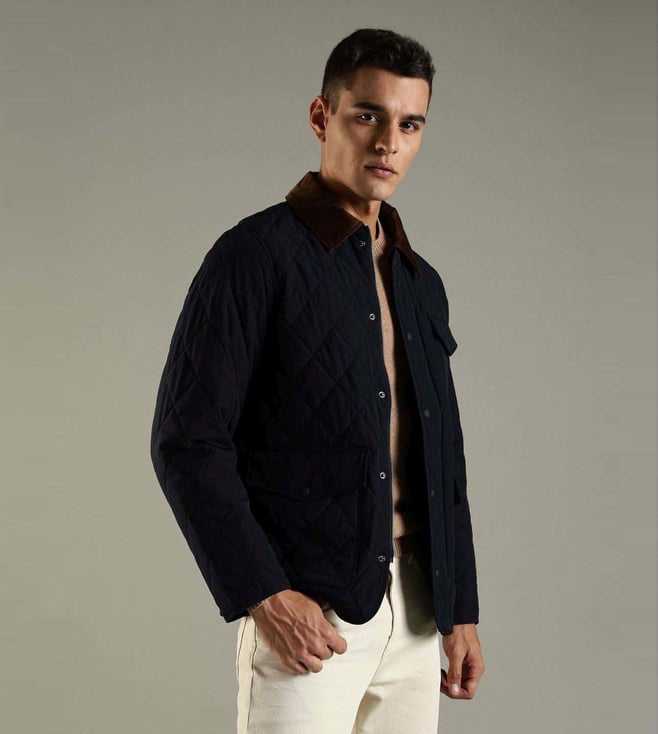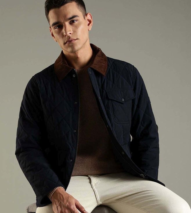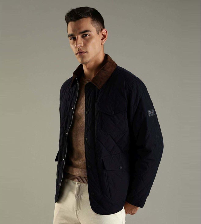 Get ready to be overwhelmed with a flurry of compliments by wearing this blue regular fit jacket from TOMMY HILFIGER. Tailored to sartorial perfection from premium quality fabric, it assures a soft and soothing touch against the skin. The shirt collar adds to its appeal.
