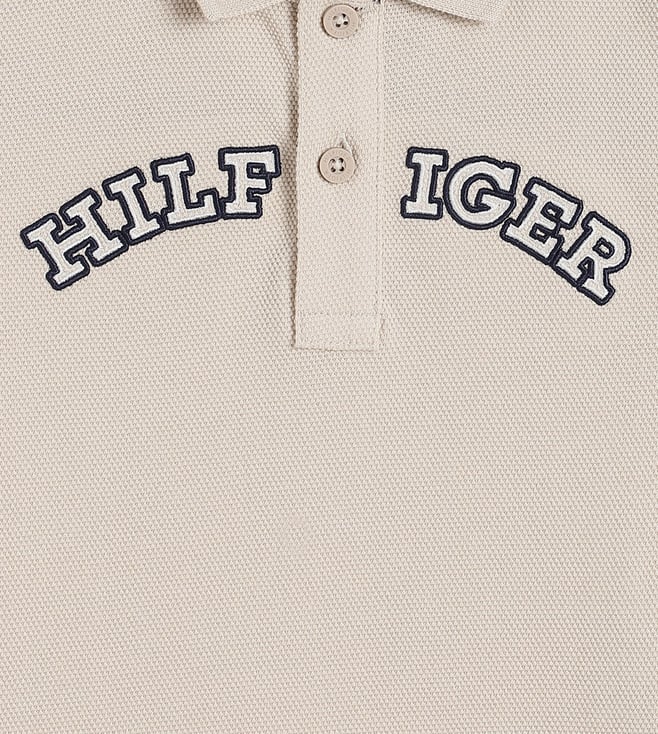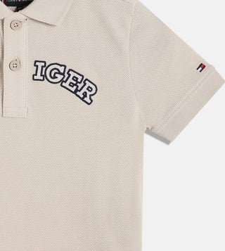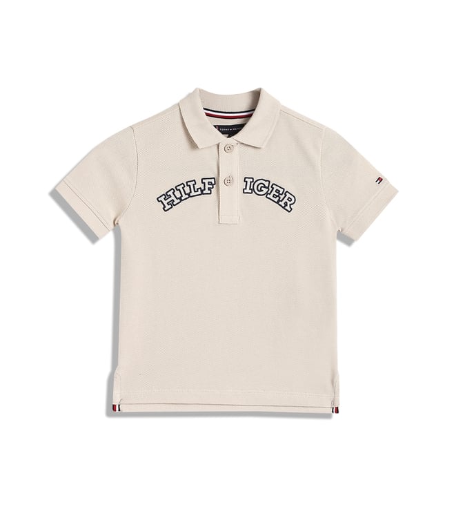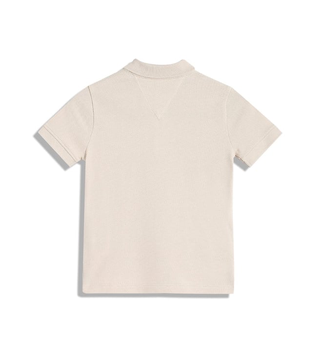 TOMMY HILFIGER Boys Beige Cotton Solid Polo T-Shirt