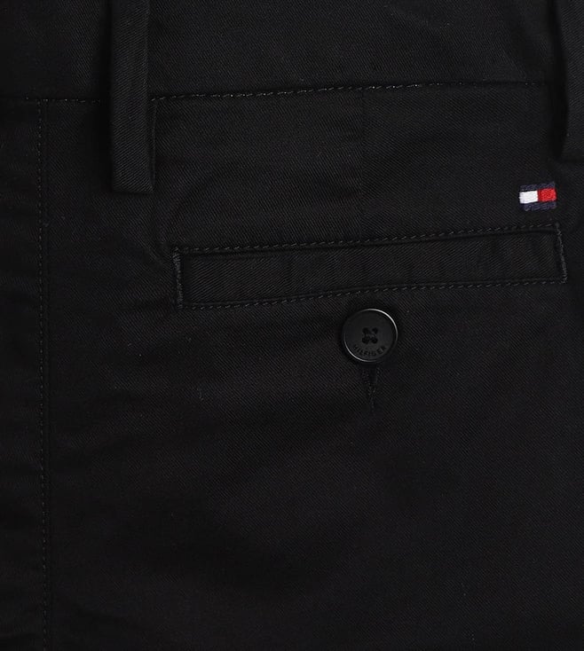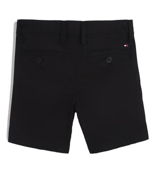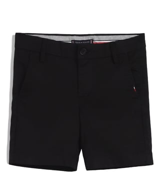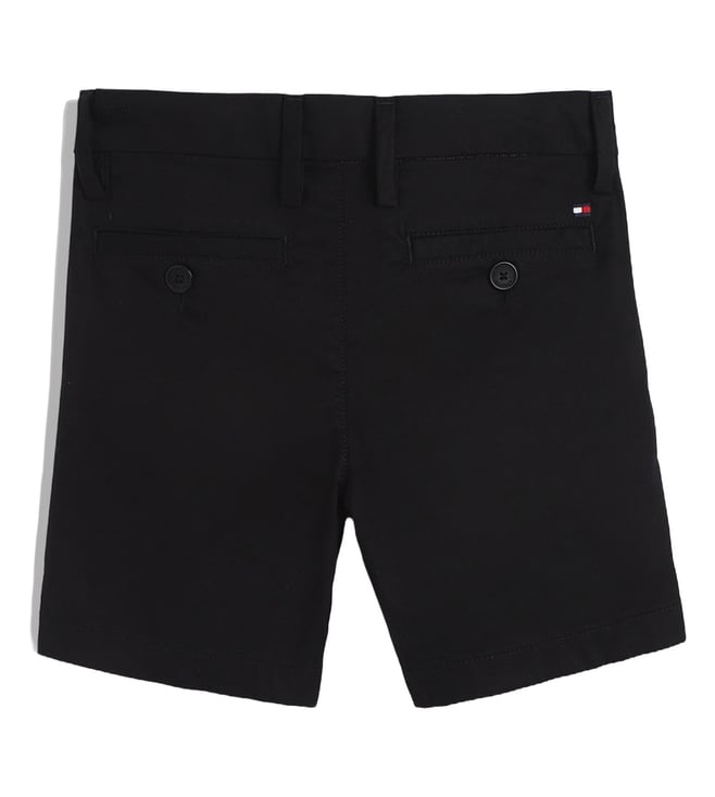 TOMMY HILFIGER boys black shorts. Black regular-fit shorts, solid pattern, ideal for casual activities. Versatile and comfortable, pair with a graphic tee for a cool look.