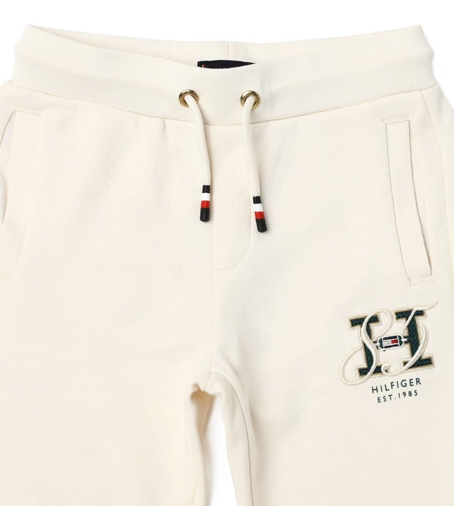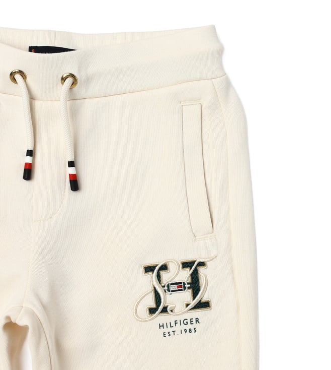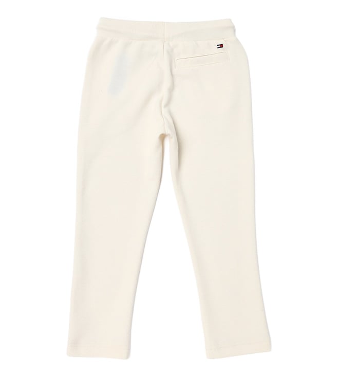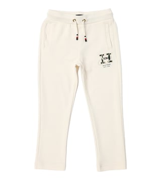 Elevate your little one's casual wardrobe with these TOMMY HILFIGER Boys Off White Logo Regular Fit Trackpants. Crafted for both comfort and style, these trackpants feature a classic Tommy Hilfiger logo design, a regular fit for all-day wear, and an off-white color that pairs effortlessly with any top. Whether he's lounging at home or playing outside, these trackpants are the perfect addition to his wardrobe. Upgrade his look with these versatile and trendy trackpants today.