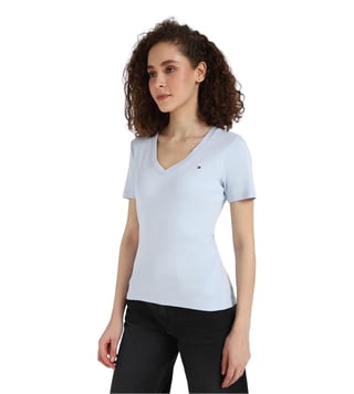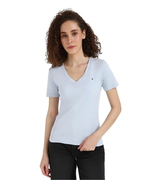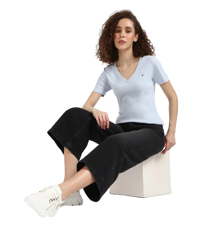 TOMMY HILFIGER Breezy Blue Cotton Slim Fit T-Shirt