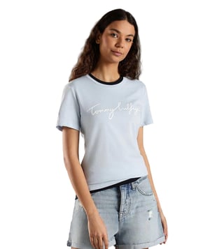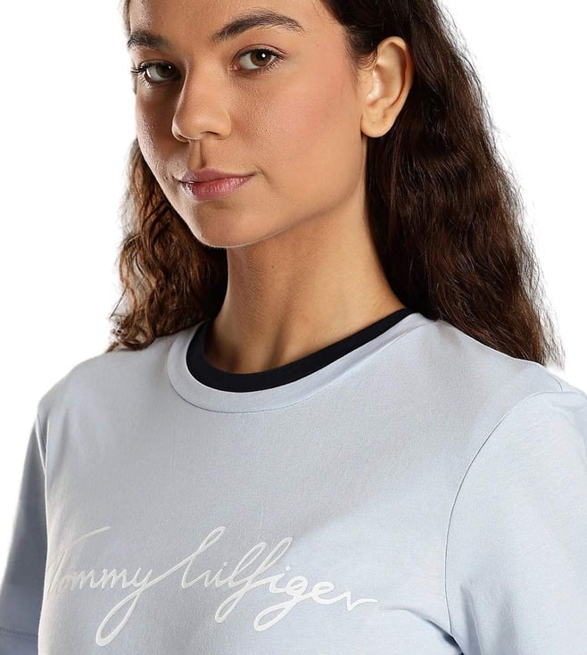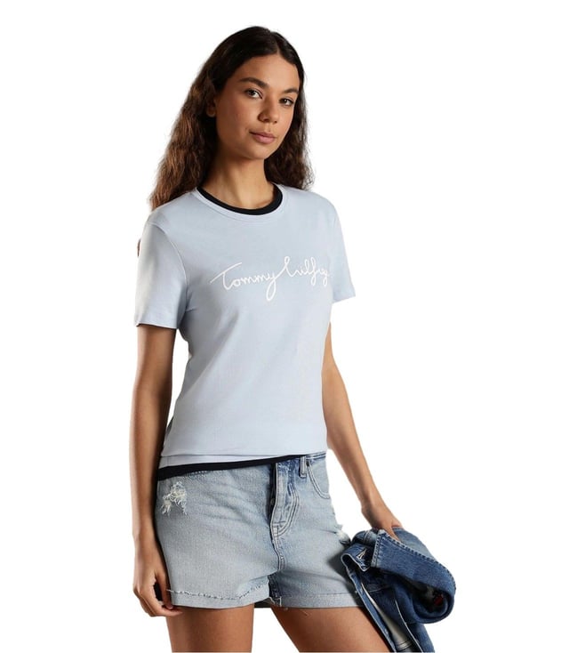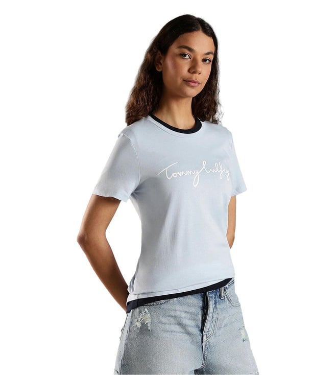 TOMMY HILFIGER Breezy Blue Logo Regular Fit Cotton T-Shirt