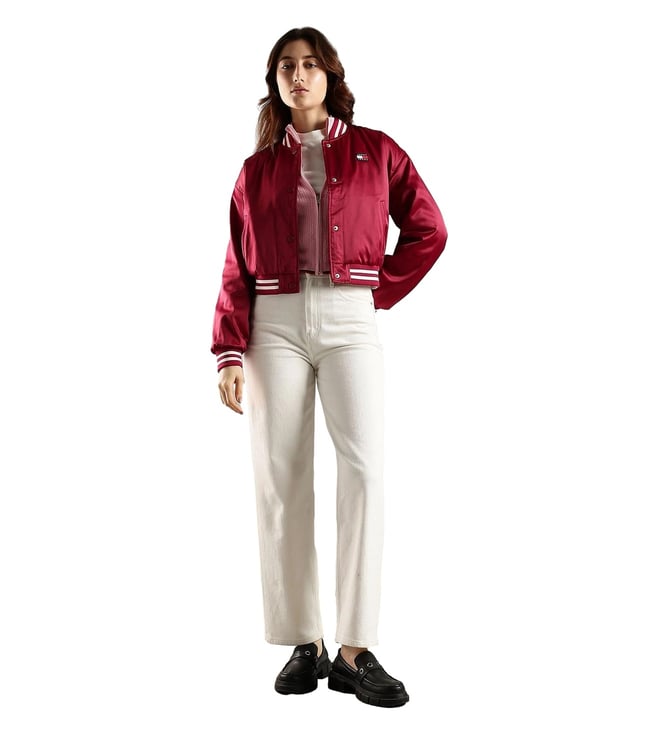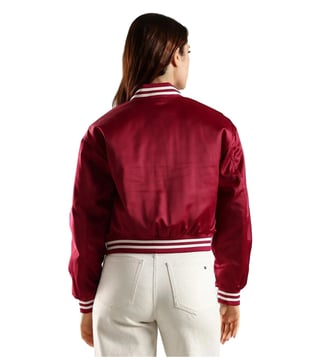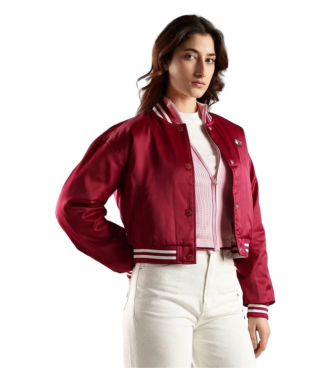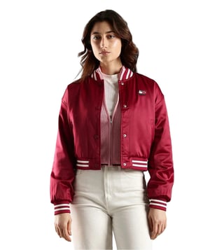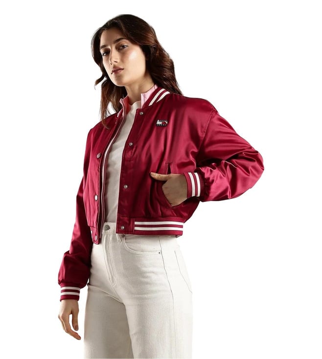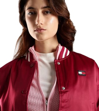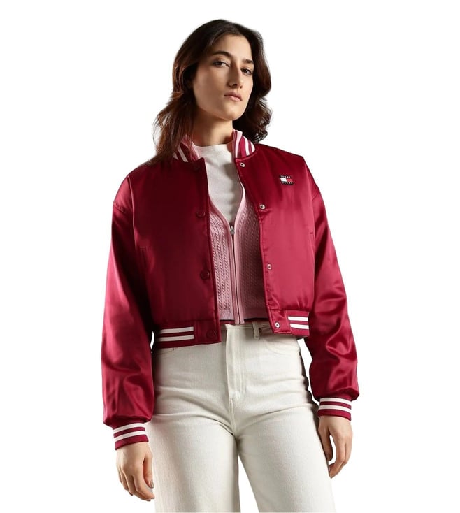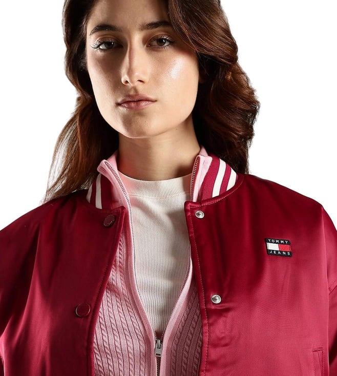 TOMMY HILFIGER Brilliant Berry Regular Fit Polyester Baseball Collar Bomber Jacket