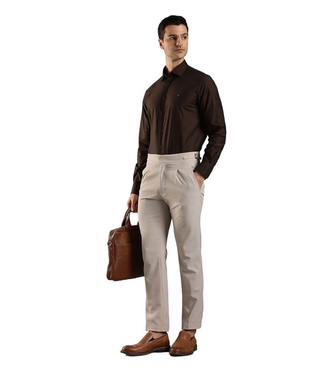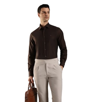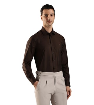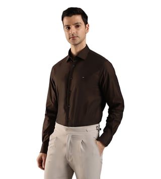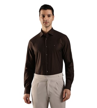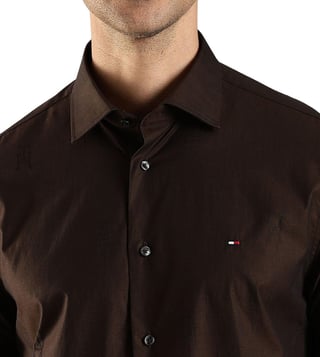 TOMMY HILFIGER Brown Cotton Regular Fit Logo Printed Shirt