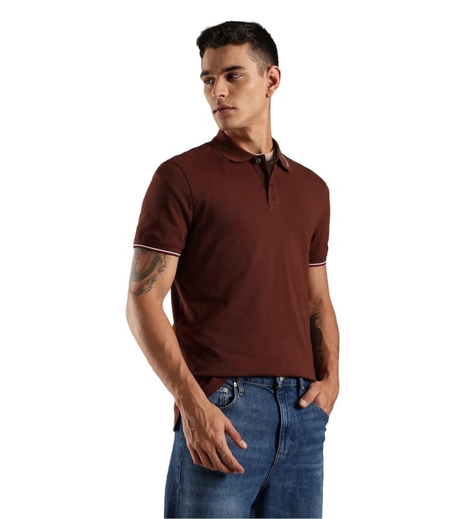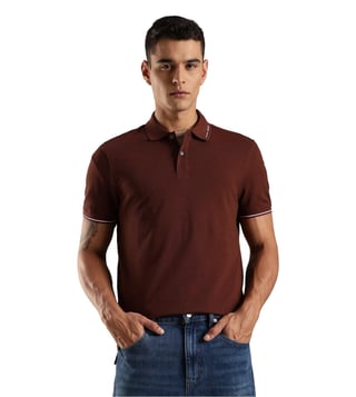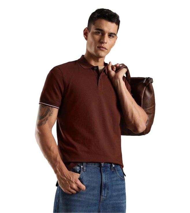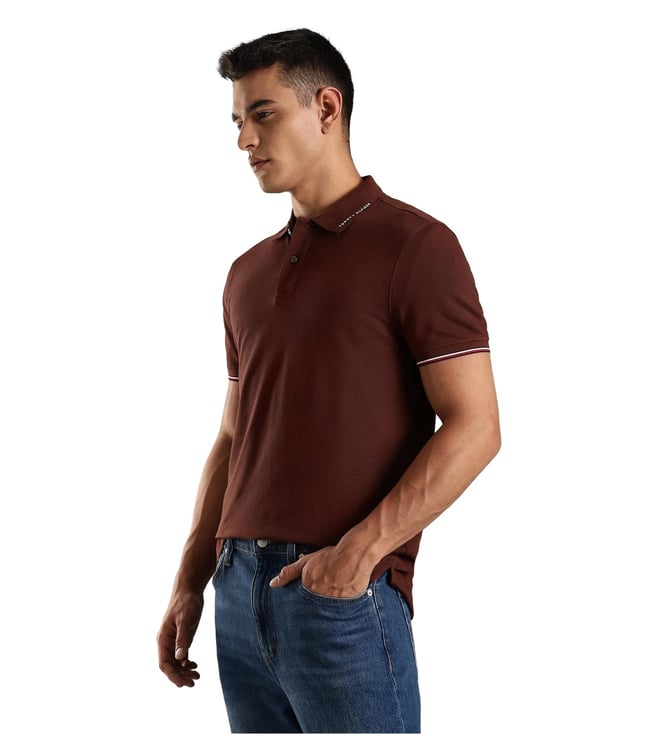 TOMMY HILFIGER Brown Cotton Regular Fit Polo T-Shirt