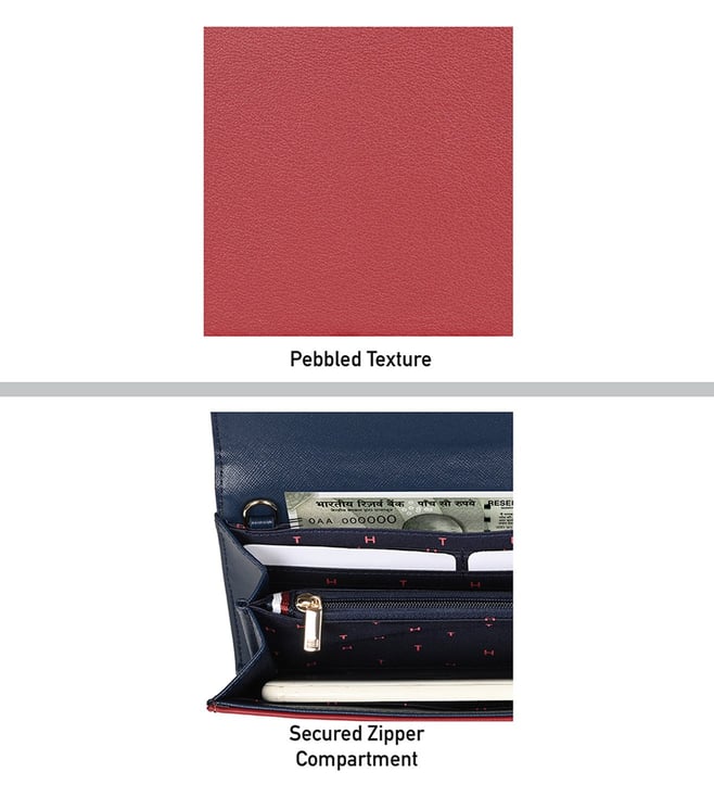 Stay organized with this sleek TOMMY HILFIGER wallet, perfect for everyday essentials. Crafted with a saffiano textured finish, it offers a refined and durable exterior. Designed for functionality, it provides ample space for coins, cards, and other necessities.