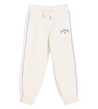 TOMMY HILFIGER Cream Cotton Relaxed Fit Logo Printed Joggers
