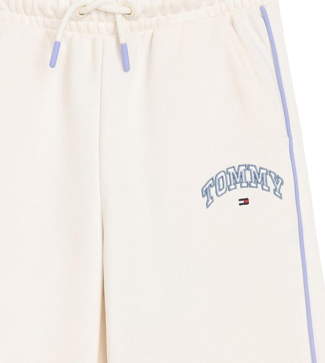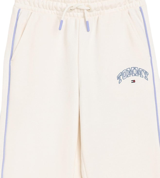TOMMY HILFIGER Cream Cotton Relaxed Fit Logo Printed Joggers