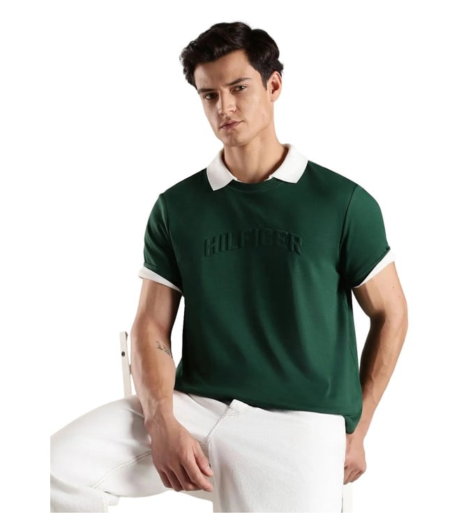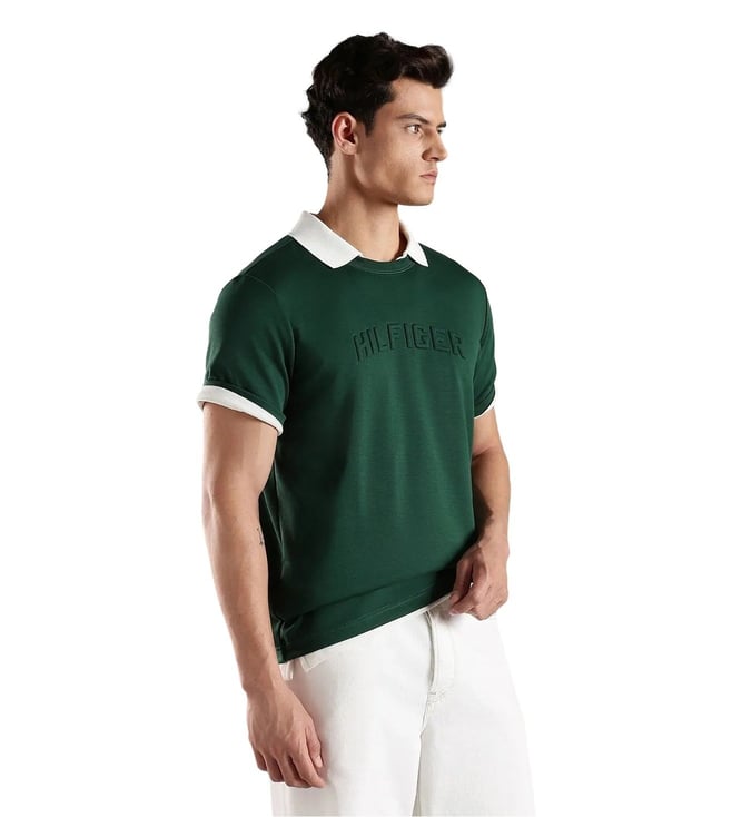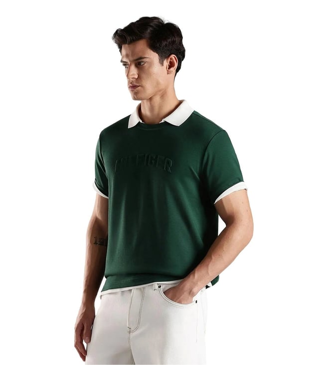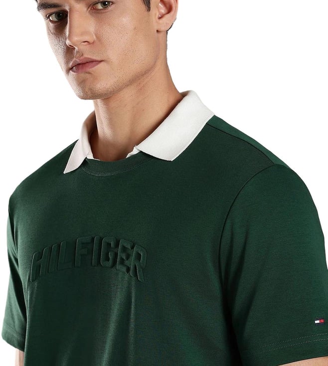 TOMMY HILFIGER Dark Green Logo Regular Fit Cotton Polo T-Shirt