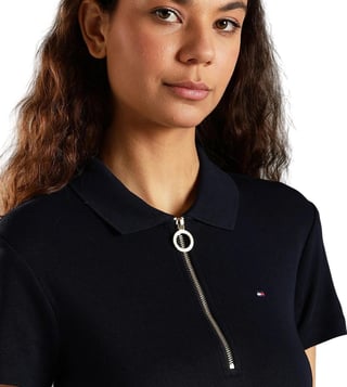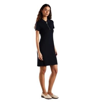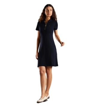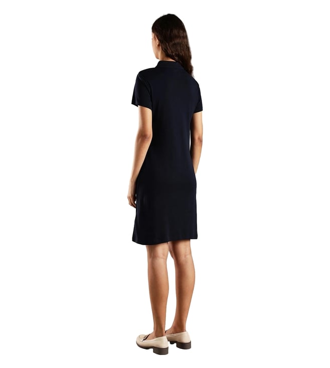 Embrace casual style with this navy t-shirt dress from our U.S. collection. Crafted from soft, knitted cotton, this solid-patterned dress is perfect for errands or coffee dates. Its western-inspired design offers versatility for day-to-night looks. Pair with sneakers and a denim jacket for a casual vibe or statement jewelry for an evening out. This dress is a chic, comfortable staple. 550 characters.