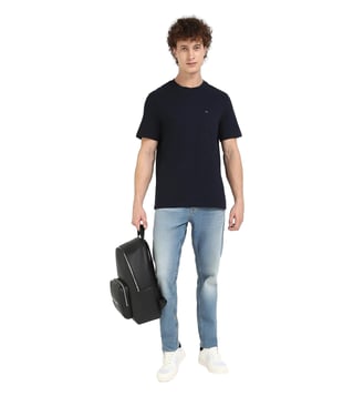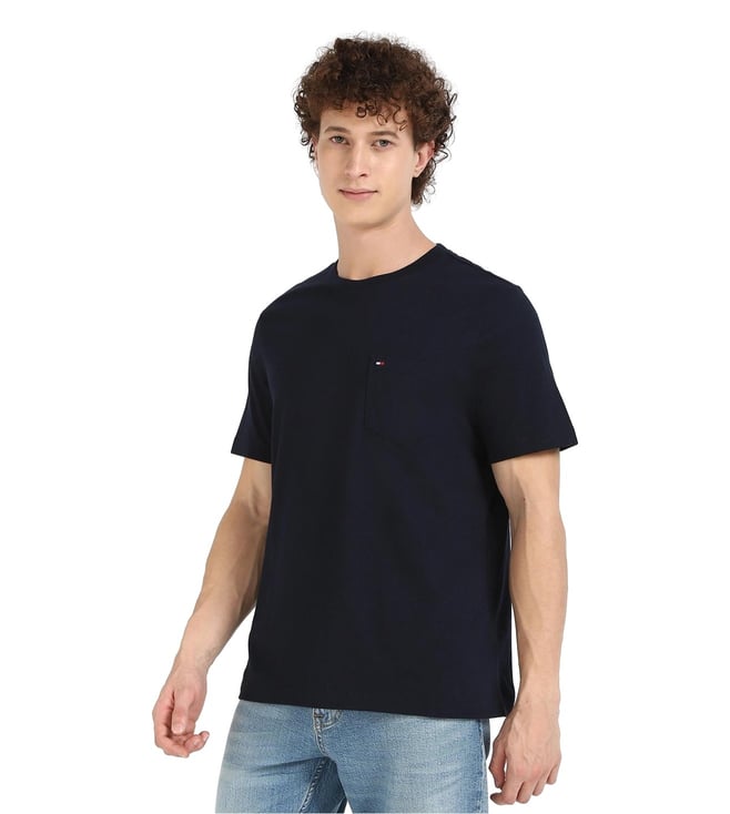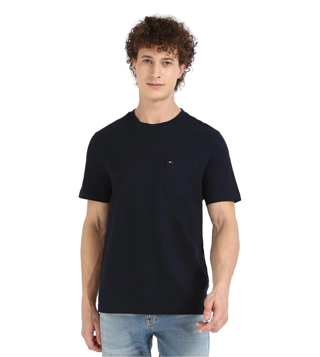 Craft an impeccable look by wearing this desert sky regular fit t-shirt from TOMMY HILFIGER. Tailored to sartorial perfection from premium quality fabric, it assures a soft and soothing touch against the skin. The round neck adds to its appeal. Exuding short sleeves, it is sure to fetch you compliments from all.