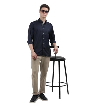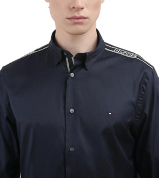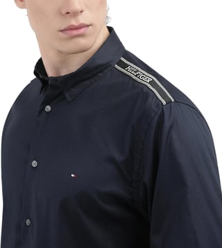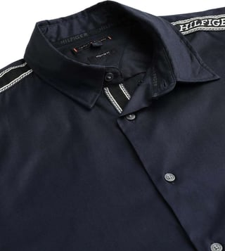 Define your cosmopolitan allure when you wear this shirt from Tommy Hilfiger. The regular fit offers a symmetrical aesthetic appeal. It delivers a clean and well-proportioned look without seeming too baggy or snug. Coordinate it with your other casual clothing from the wardrobe. A contrasting pair of footwear is sure to amp up the overall get-up.