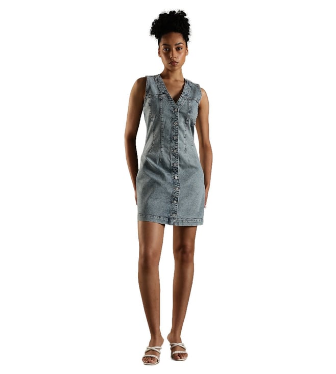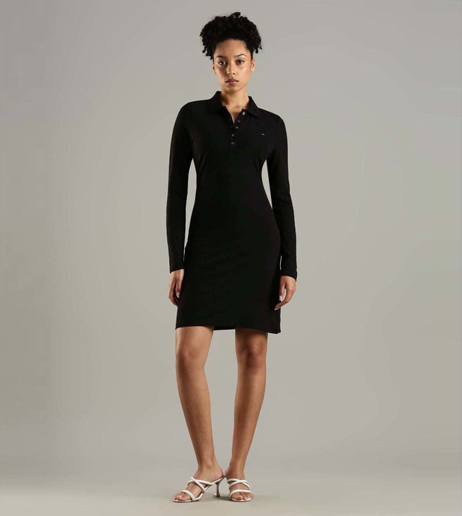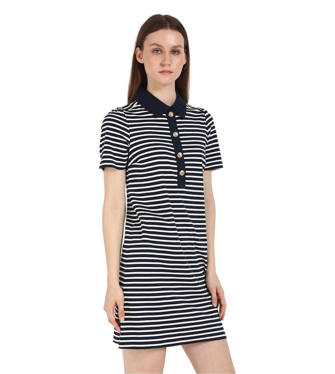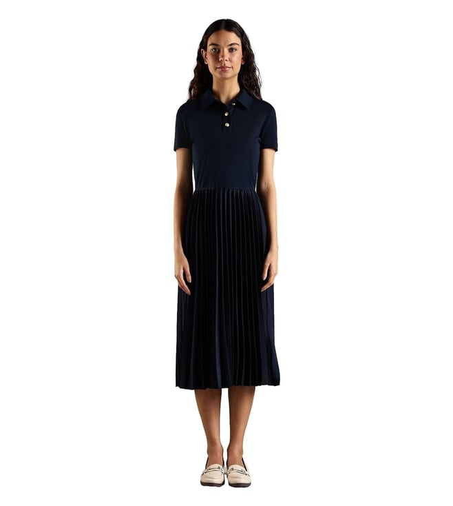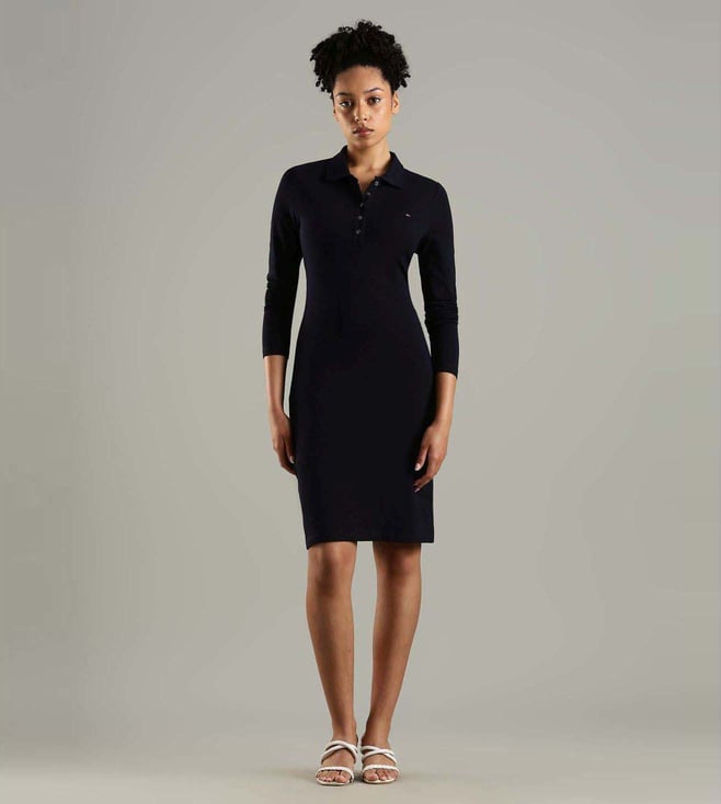 Dark Night Navy Cotton Polo Collar Midi Dress