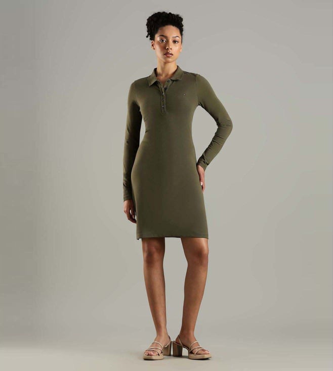 Terra Red Cotton Polo Collar T-Shirt Dress