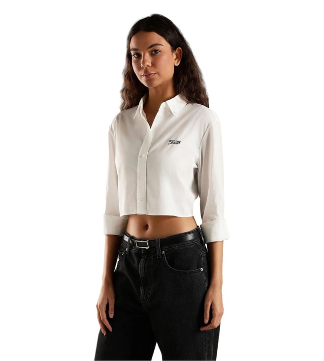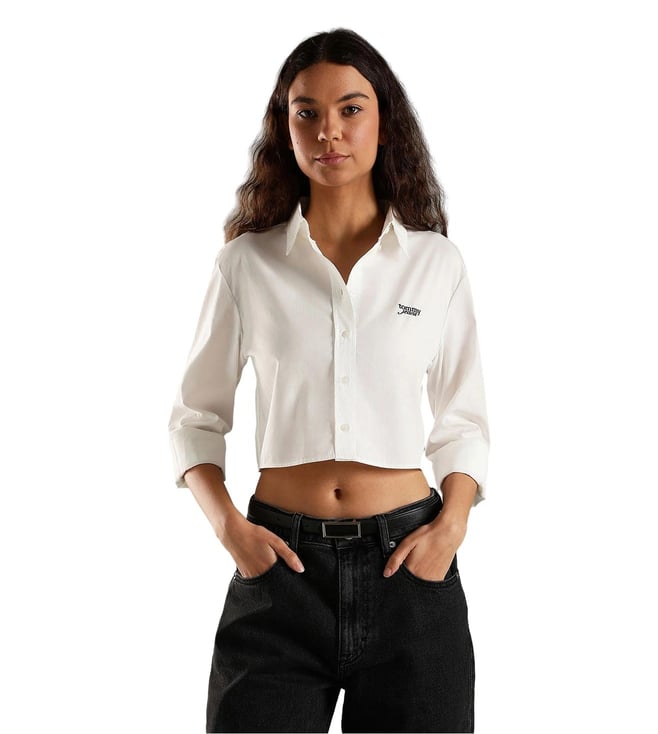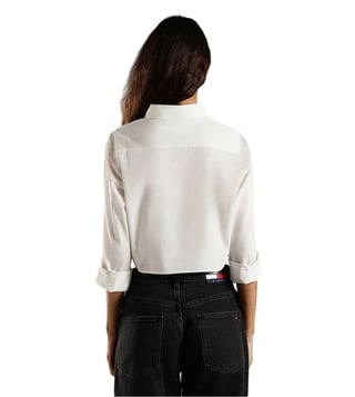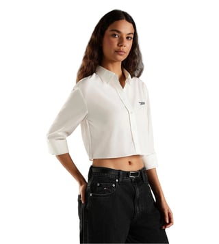 Embrace timeless chic with this white shirt from our Europe collection. Crafted from woven cotton, this solid-patterned piece offers elegance for casual outings. Its western-inspired design ensures comfort and versatility. Pair with jeans or a skirt for a chic, relaxed look. This regular-fit shirt is a wardrobe essential. 550 characters.