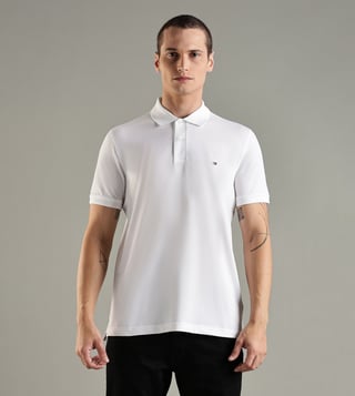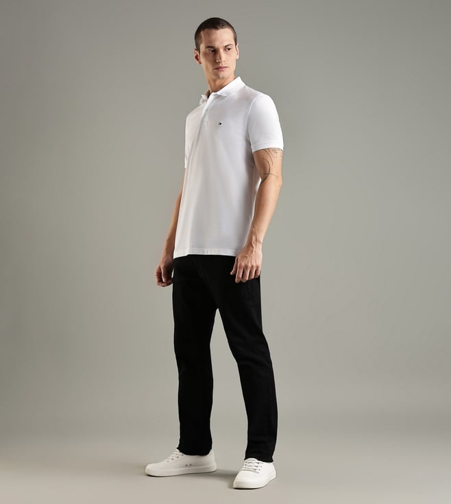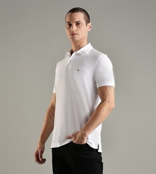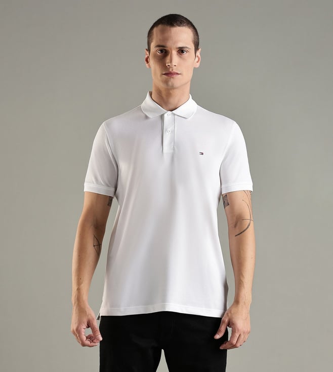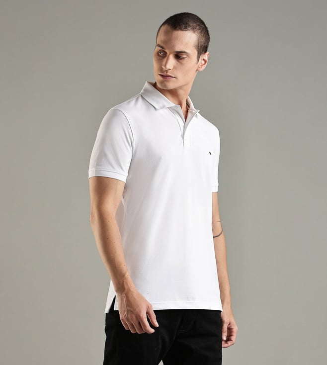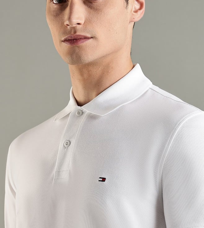 TOMMY HILFIGER Europe Collection White Cotton Regular Fit Solid Polo T-Shirt