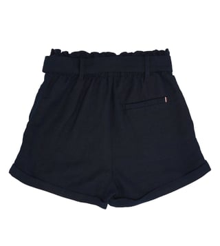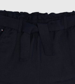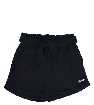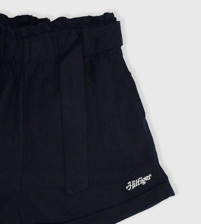 TOMMY HILFIGER girls blue regular fit mid rise shorts. Blue linen-blend hotpants, solid pattern, woven. Europe collection, perfect for casual days. Comfortable, pair with a cute top.