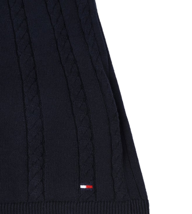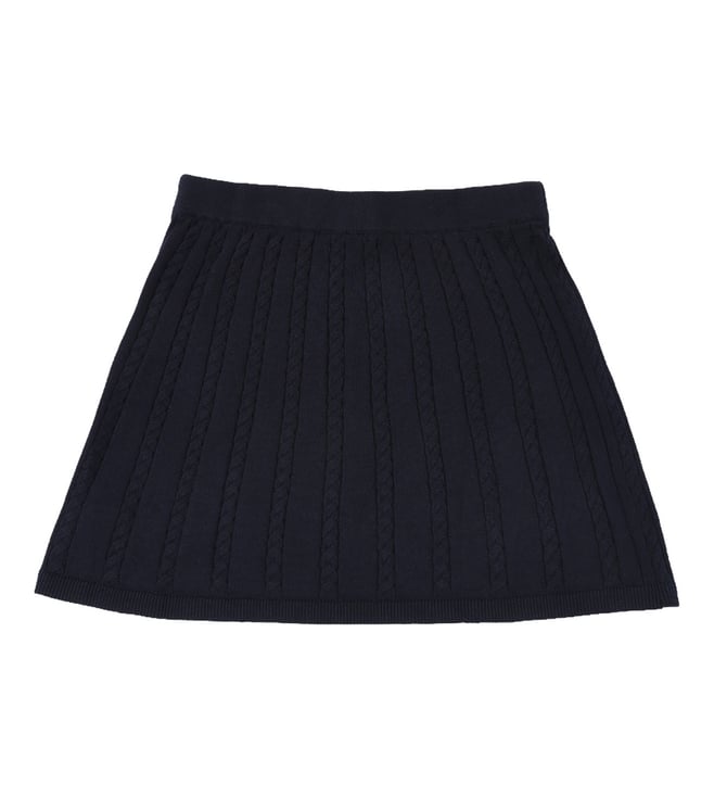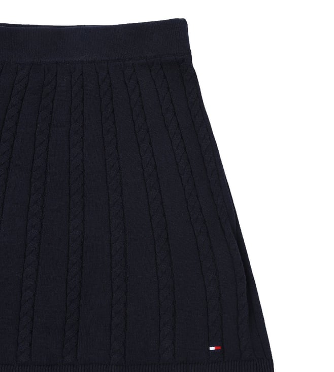 TOMMY HILFIGER Girls Navy Blue Cable Knit Self Regular Fit Skirt