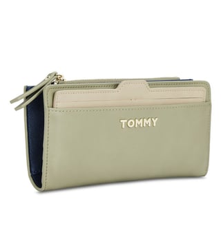 Inflate the collection of your accessories in a trendy way with this bi-fold wallet from Tommy Hilfiger. This green and beige bi-fold wallet, featuring a clean pattern, can easily fit in all your essential cash and cards in its spacious compartments. Crafted from high-quality PU, it is durable and incredibly fine in quality.
