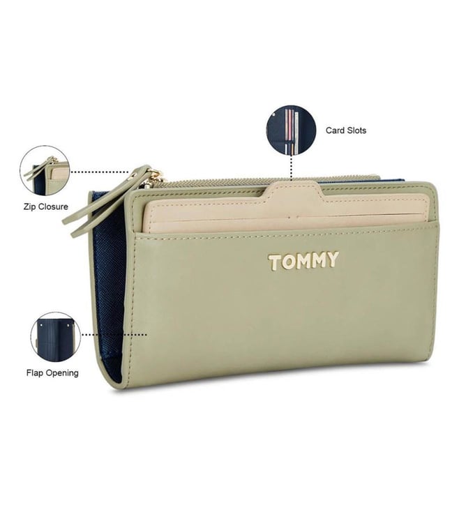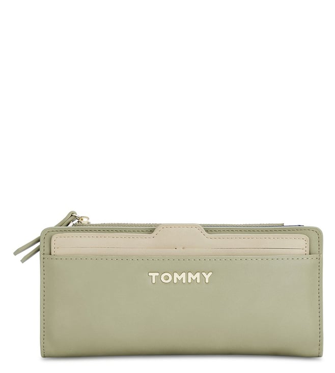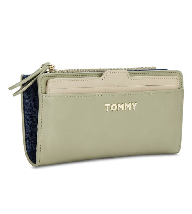 TOMMY HILFIGER Green & Beige Mariah Plus Small Bi-Fold Wallet