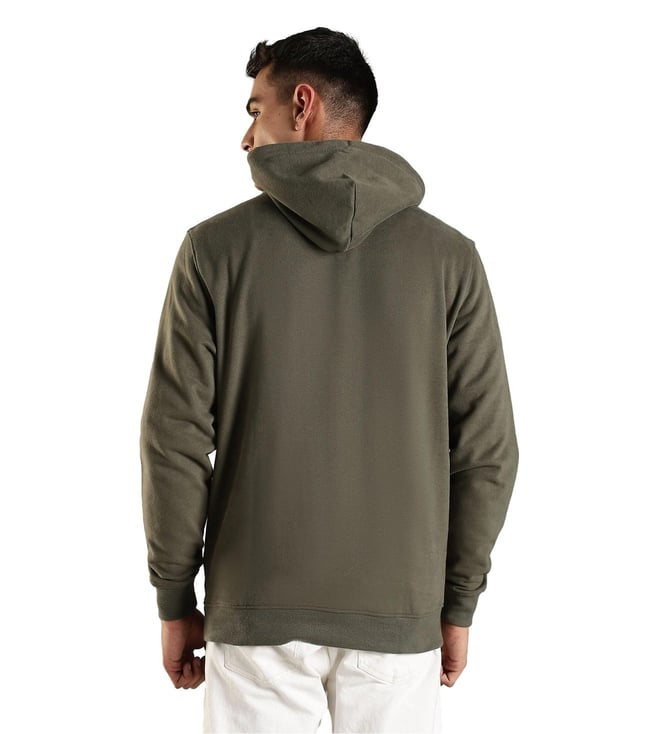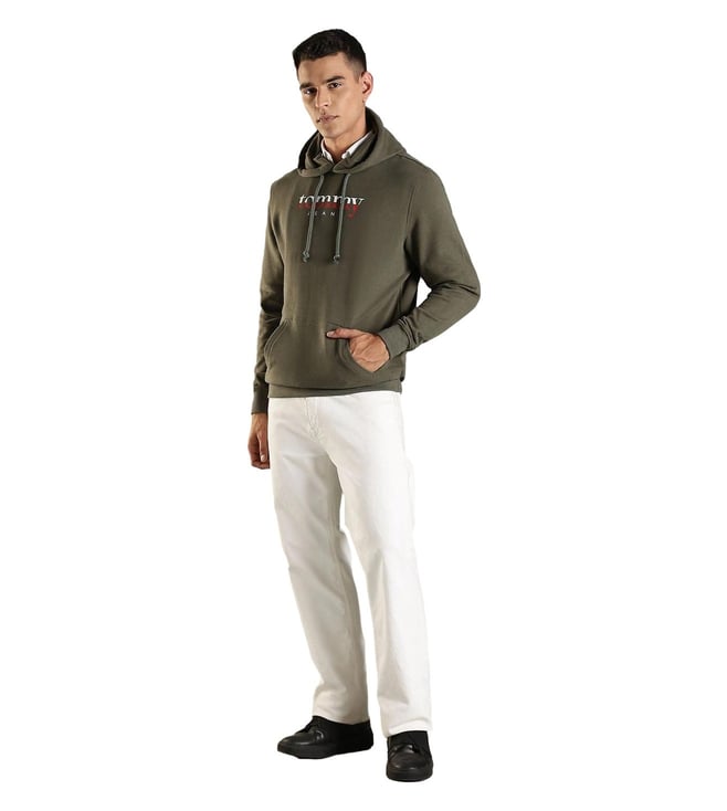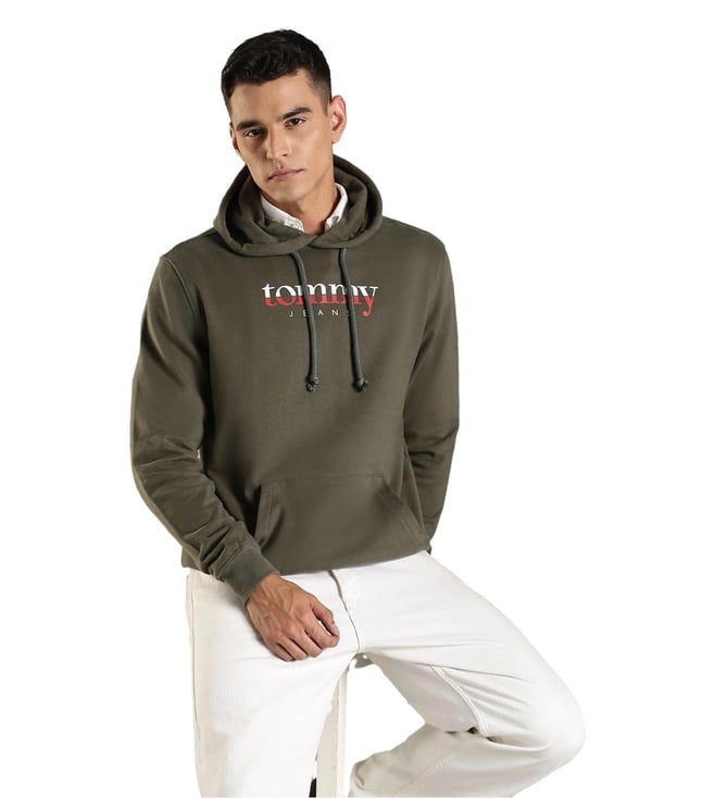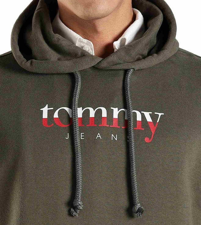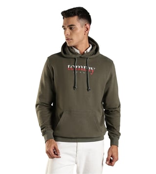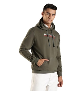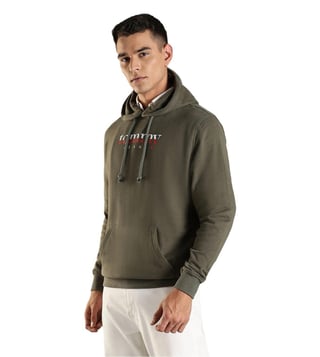 TOMMY HILFIGER Green Cotton Regular Fit Logo Printed Hooded Sweatshirt