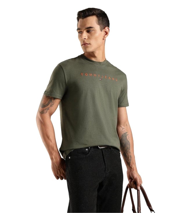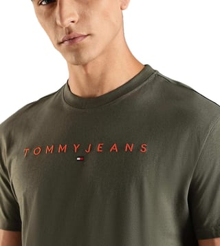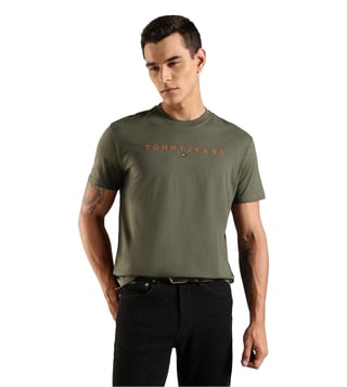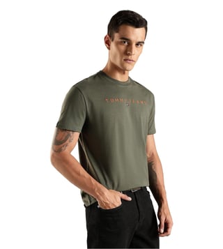 TOMMY HILFIGER Green Cotton Regular Fit Logo Printed T-Shirt