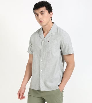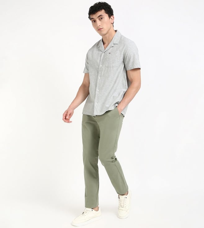 TOMMY HILFIGER Green Cotton Regular fit Solid Shirt