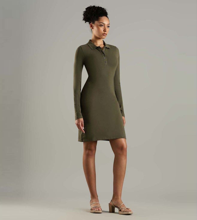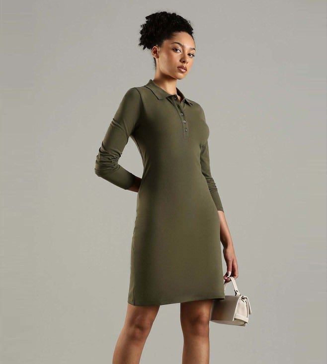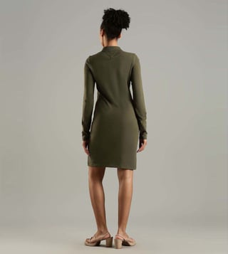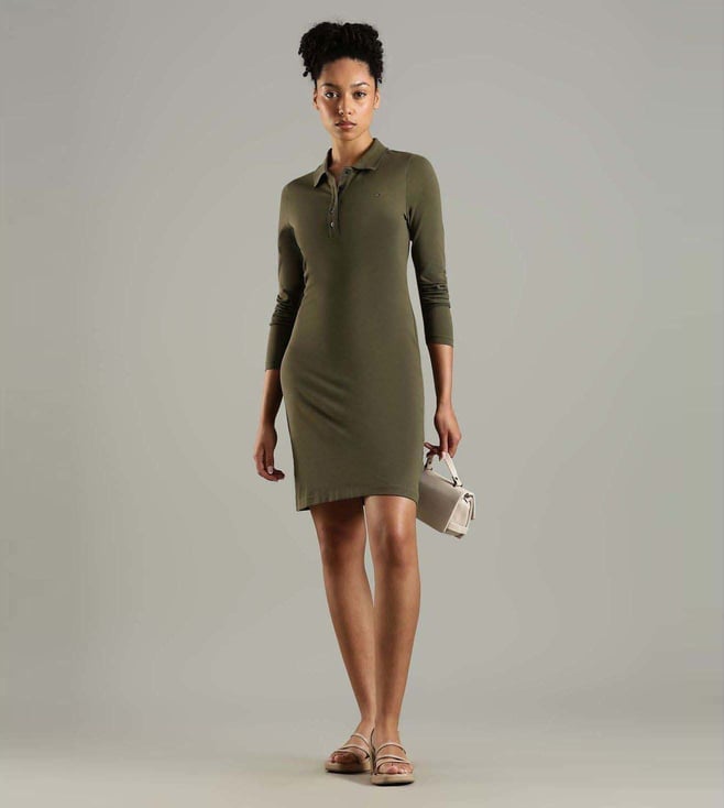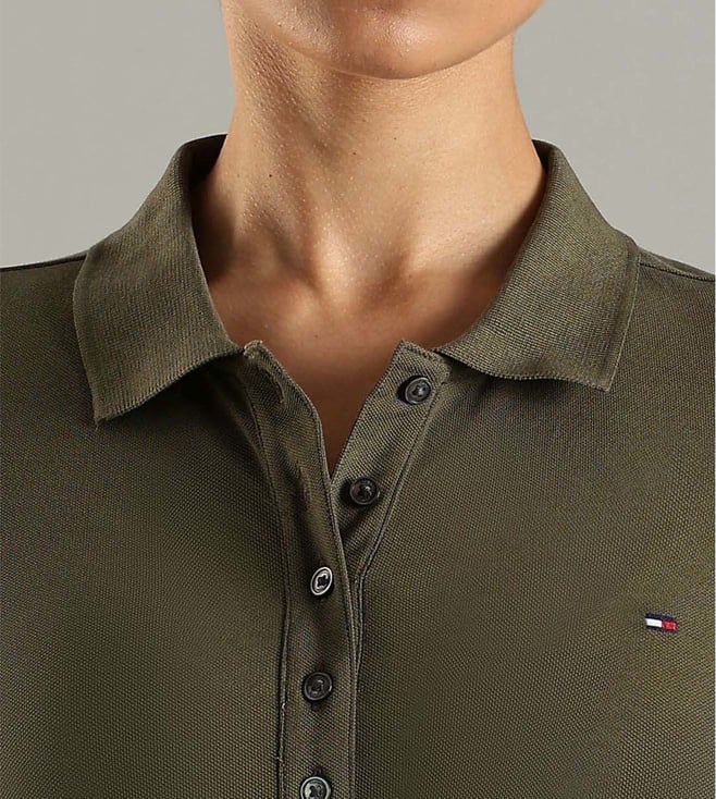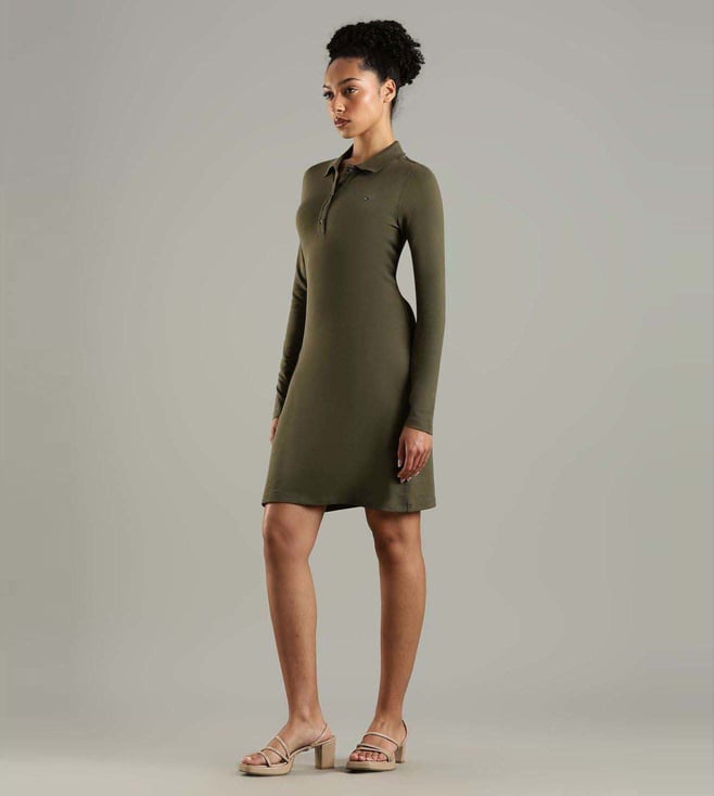 Pump up your style quotient with this green slim fit dress from TOMMY HILFIGER. Tailored to sartorial perfection from premium quality fabric, it assures a soft and soothing touch against the skin.
