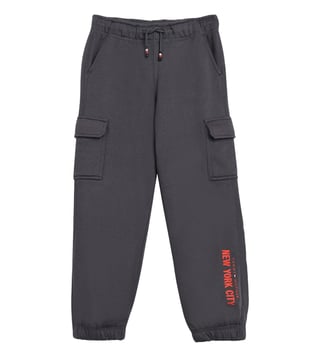 TOMMY HILFIGER Grey Cotton Relaxed Fit Printed Joggers