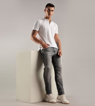 Introducing our Grey Regular Fit Men's Jeans, crafted from premium cotton fabric for ultimate comfort and durability. These jeans feature a sleek, solid pattern that effortlessly complements any wardrobe. The versatile grey hue offers a modern twist on a classic staple, making them perfect for both casual outings and smart-casual events. Designed with a regular fit, they provide a timeless silhouette that flatters all body types, ensuring you look sharp and feel confident all day long.