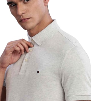 TOMMY HILFIGER Grey Solid Polo T-Shirt