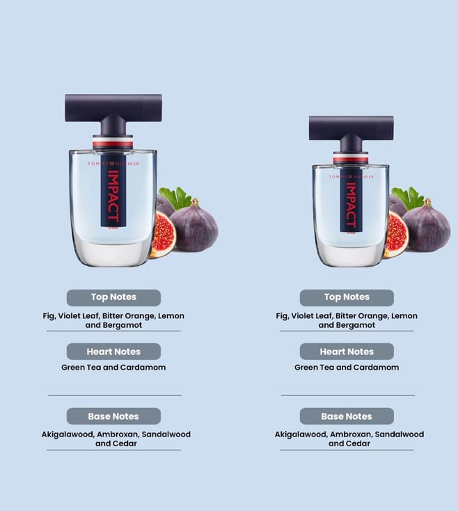 For those with a boundless sense of imagination, who dare to dream, desire and disrupt. TOMMY HILFIGER introduces a third chapter of Impact for goal setters and game changers. TOMMY HILFIGER Impact Spark Eau de Toilette is a spirited woody fruity scent that captures the electricity of a big idea in the making. Ignite your passions as notes of green fig blend with a spiced cardamom heart for diffused, long lasting freshness. This pack contains TOMMY HILFIGER Impact Spark Eau de Toilette - 100 ml, TOMMY HILFIGER Impact Spark Eau de Toilette - 50 ml.