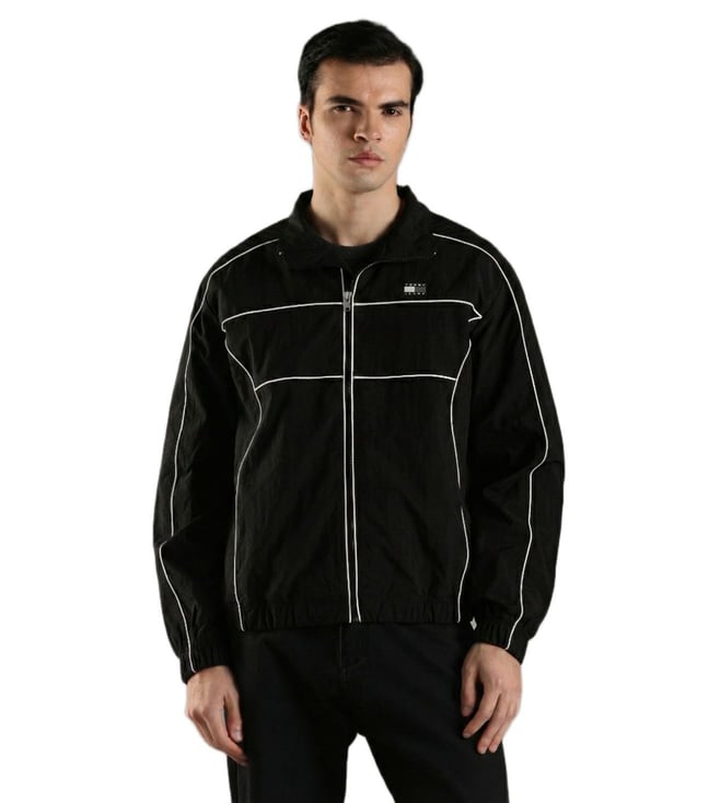 Black Printed Regular Fit Jacket