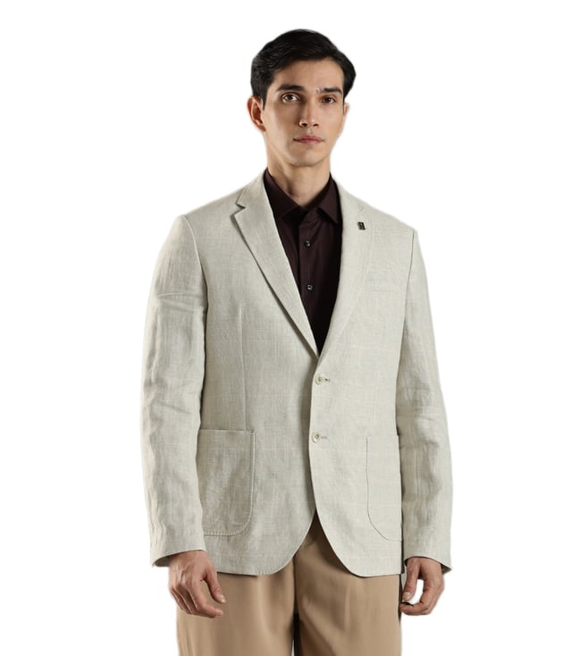 Beige Slim Fit Single Breasted Blazer