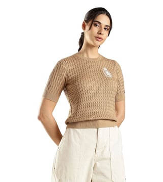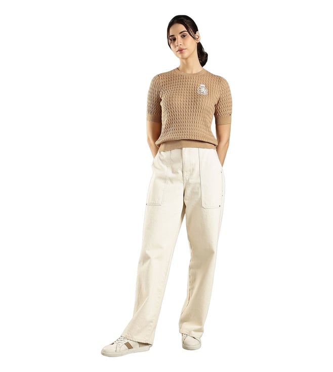 Add a touch of earthy elegance to your casual wardrobe with this sweater from Tommy Hilfiger. This pullover sweater combines versatility with casual charm. Layer over a turtleneck or pair with dark jeans for sophisticated yet relaxed outfits perfect for coffee dates or casual outings.