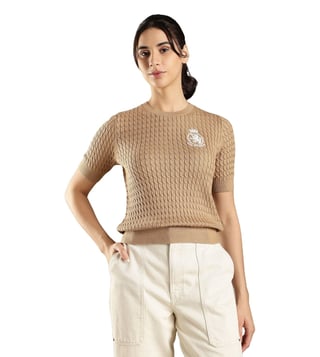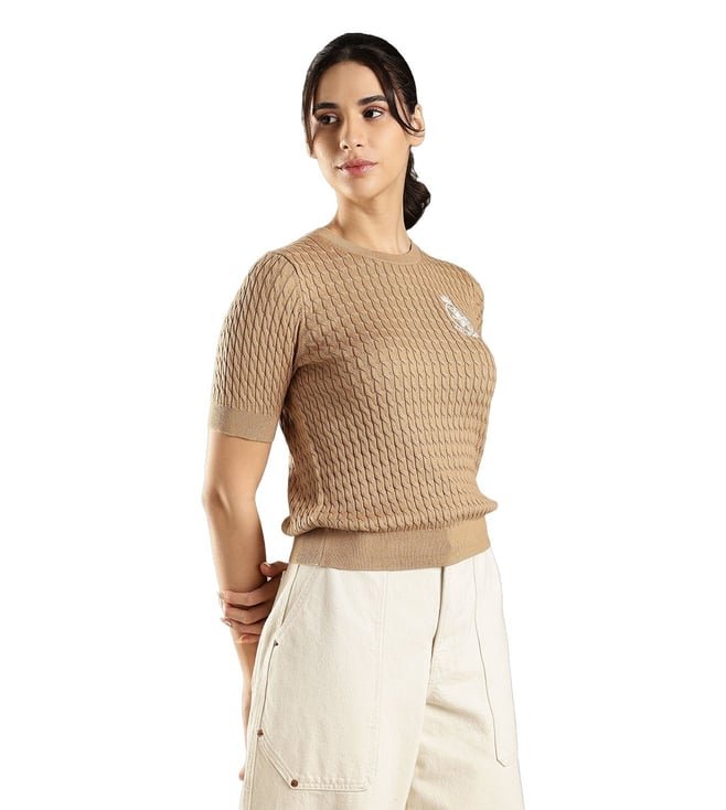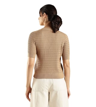TOMMY HILFIGER Khaki Cotton Regular Fit Textured Sweater