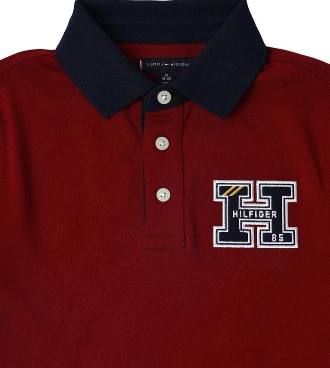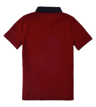 Kids Red Cotton Regular Fit Logo Printed Polo T-Shirt