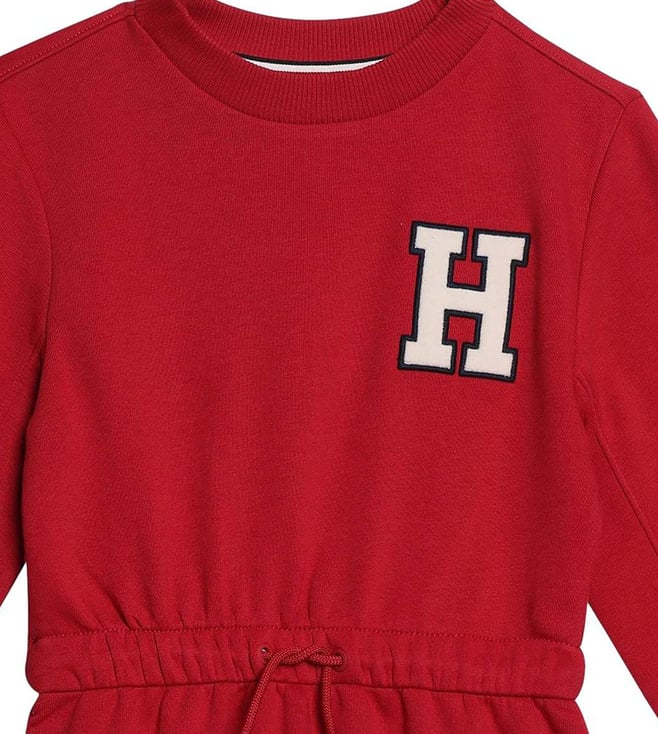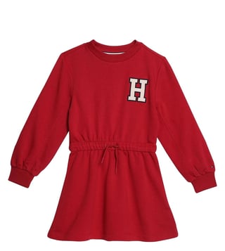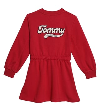 TOMMY HILFIGER Kids Red Cotton Relaxed Fit Printed Dress