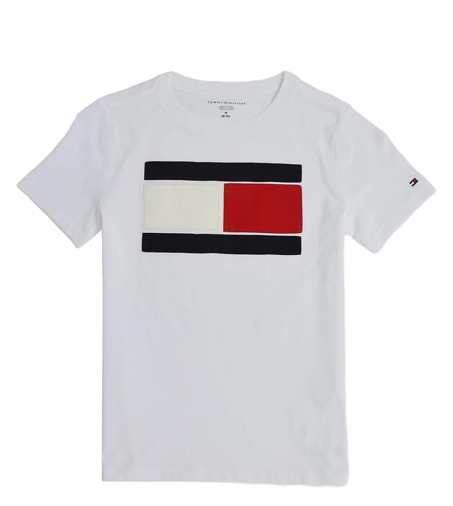 TOMMY HILFIGER Kids White Cotton Regular Fit Printed T-Shirt