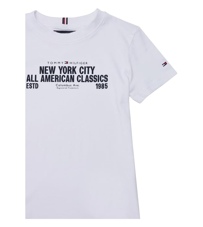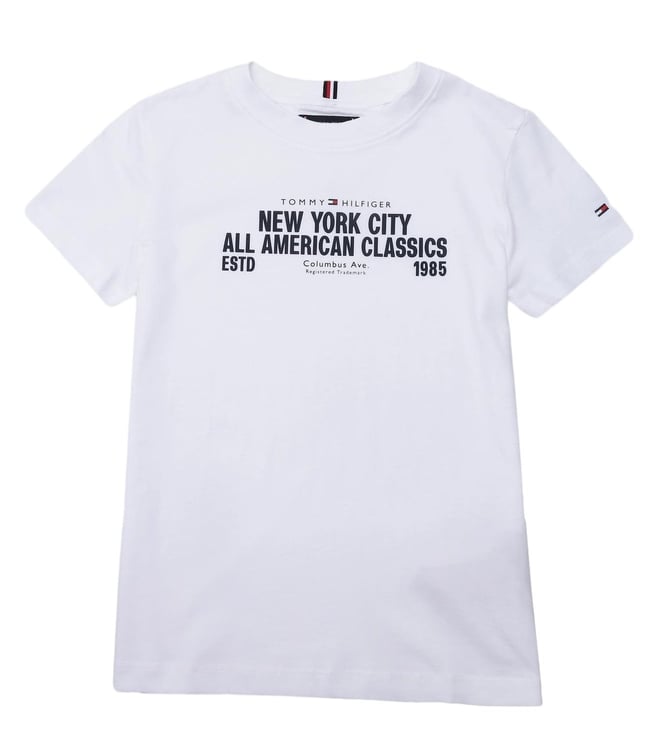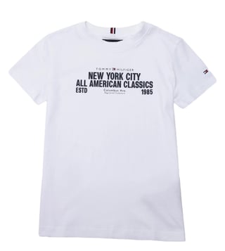 TOMMY HILFIGER Kids White Cotton Regular Fit Printed T-Shirt