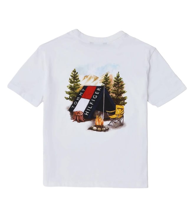 TOMMY HILFIGER Kids White Cotton Relaxed Fit Printed T-Shirt