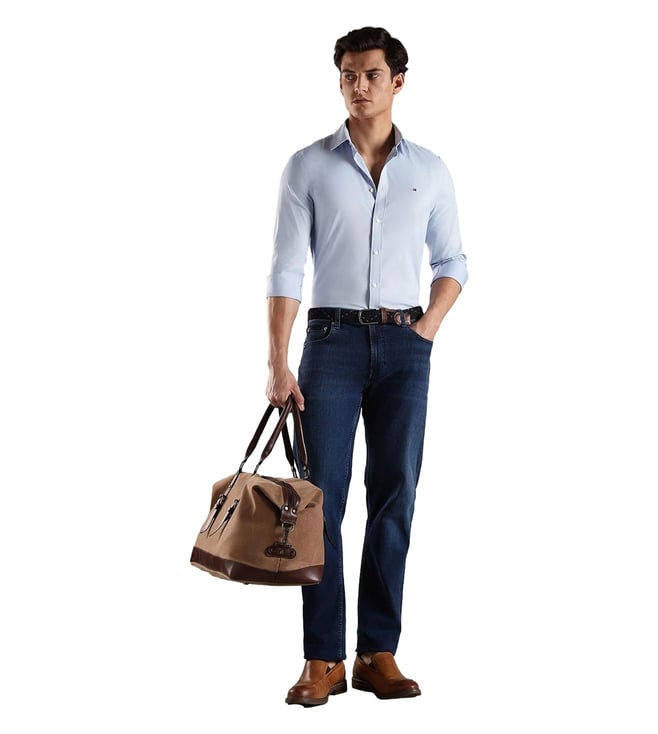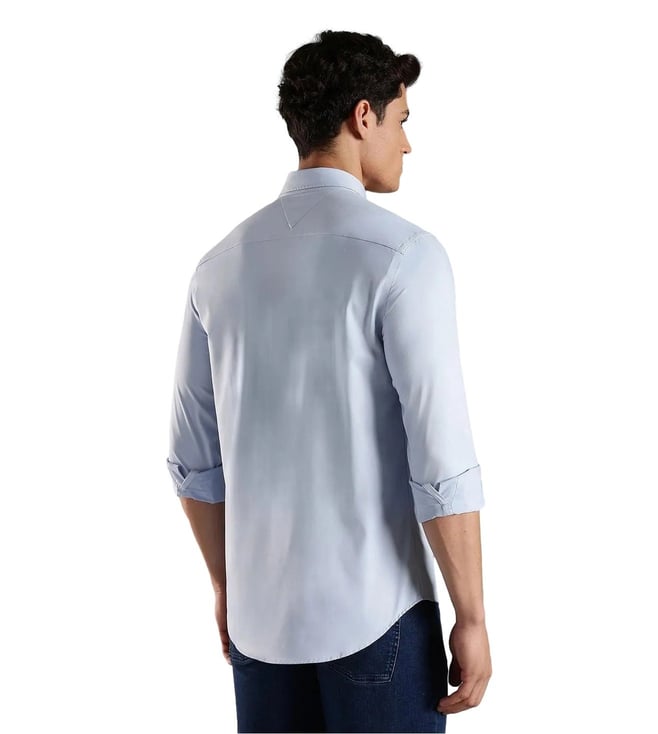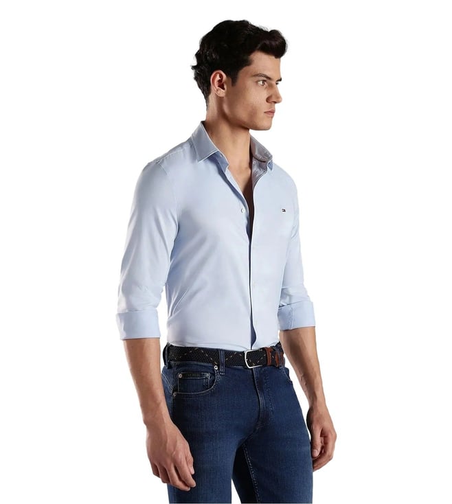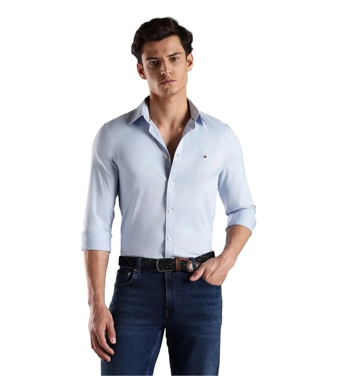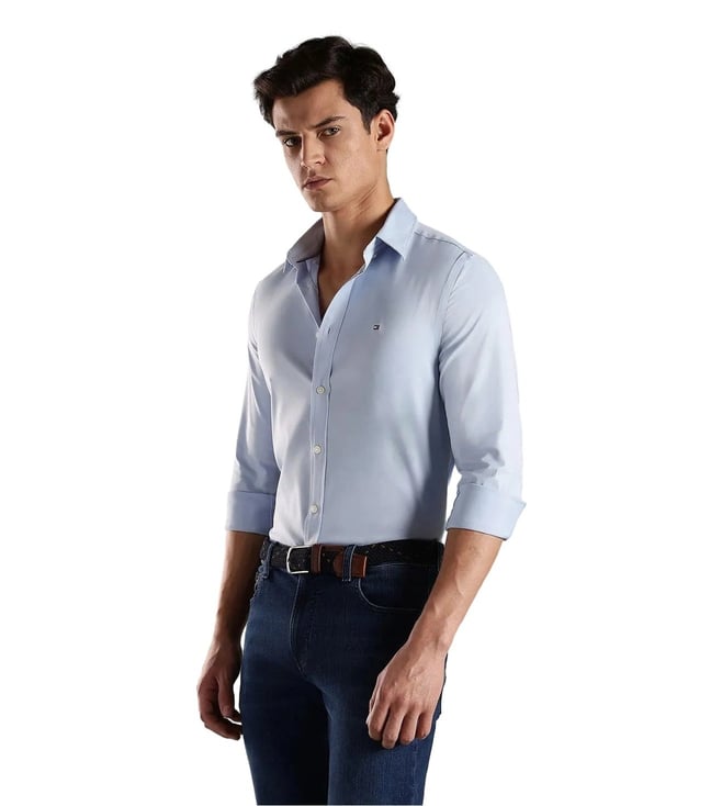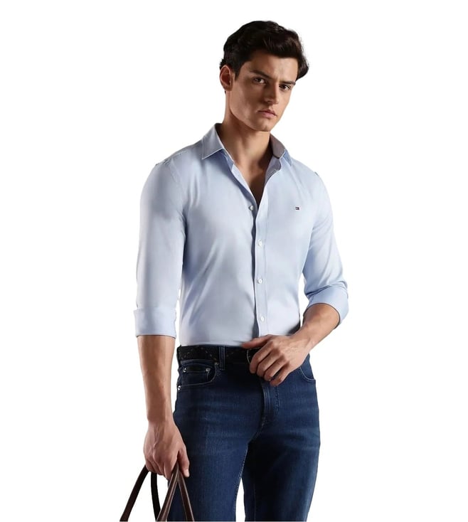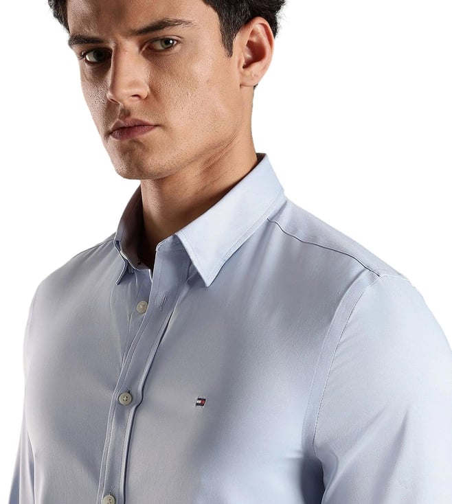 TOMMY HILFIGER Light Blue Solid Regular Fit Twill Woven Shirt
