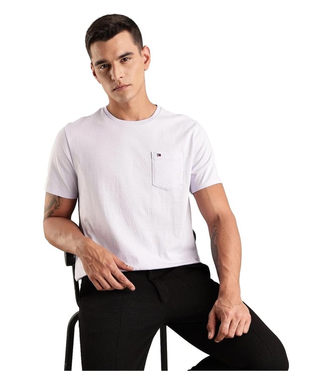Add a pop of color with this lilac sprig cotton T-shirt from Tommy Hilfiger. Crafted from knitted cotton, it offers a regular fit for relaxed comfort. The soft lilac hue brings a Western-inspired vibe, ideal for casual meetups or errands. Its breathable, durable fabric ensures all-day ease, perfect for pairing with denim or shorts. This stylish T-shirt is a modern must-have, for the contemporary man seeking a vibrant, versatile addition to their casual wardrobe.